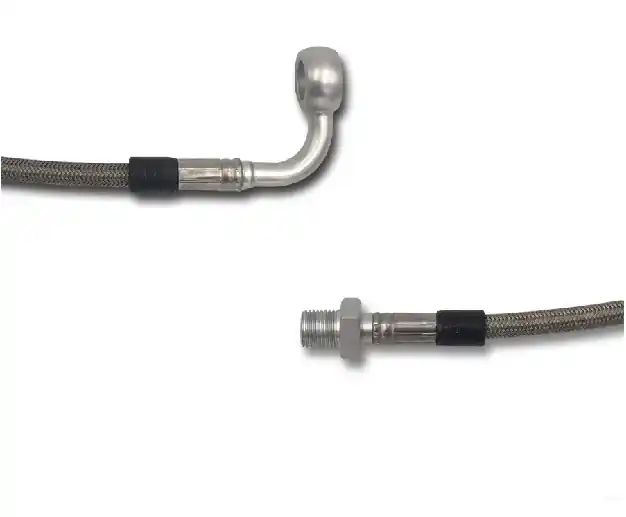 Stahlflex Bremsleitung oder Kupplungsleitung mit TÜV Teilegutachten §19/31. Anschluss 90° Öse mit Innendurchmesser 10mm2. Anschluss M 10 x 1 Aussengewinde fest Konus 60°Die Ösen sind verdrehbar, so dass jede Leitung optimal verlegt werden kann.Im Lieferumfang enthalten sind:1 x Bremsleitung / Kupplungsleitung2 x Dichtringe1 x TÜV Teilegutachten mit Montageanleitung