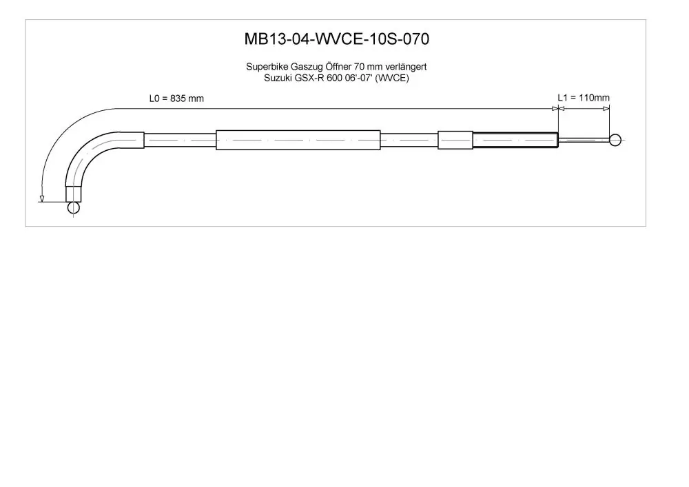 Burchard Excellence Superbike Gaszug A „Öffner“ +7,0cm verlängert schwarz Suzuki GSX-R 600 06-07 Neue Ware