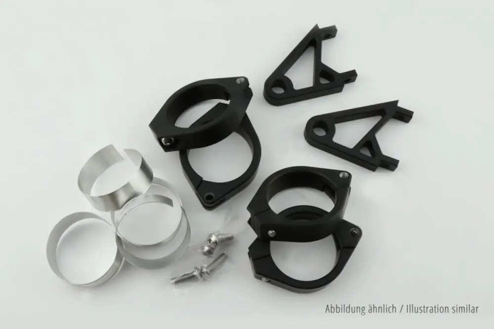 Highsider CNC Alu Lampenhalter Set XS schwarz für 42-43mm Durchmesser (1 Set) Finale Aktion